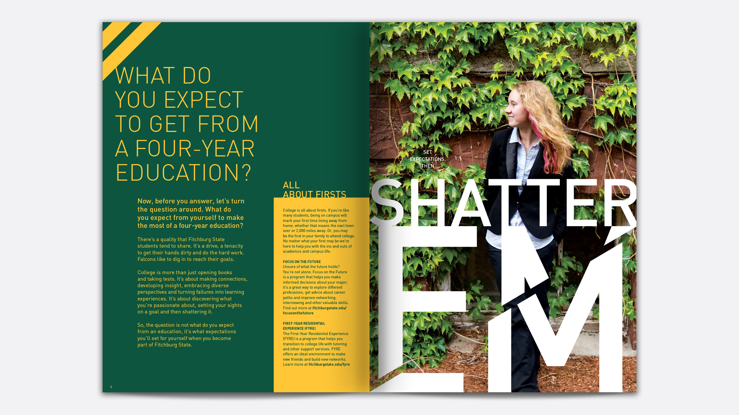 Admissions Program. Acceptance brochure, travel brochure (English and Spanish), viewbook, admissions videos.